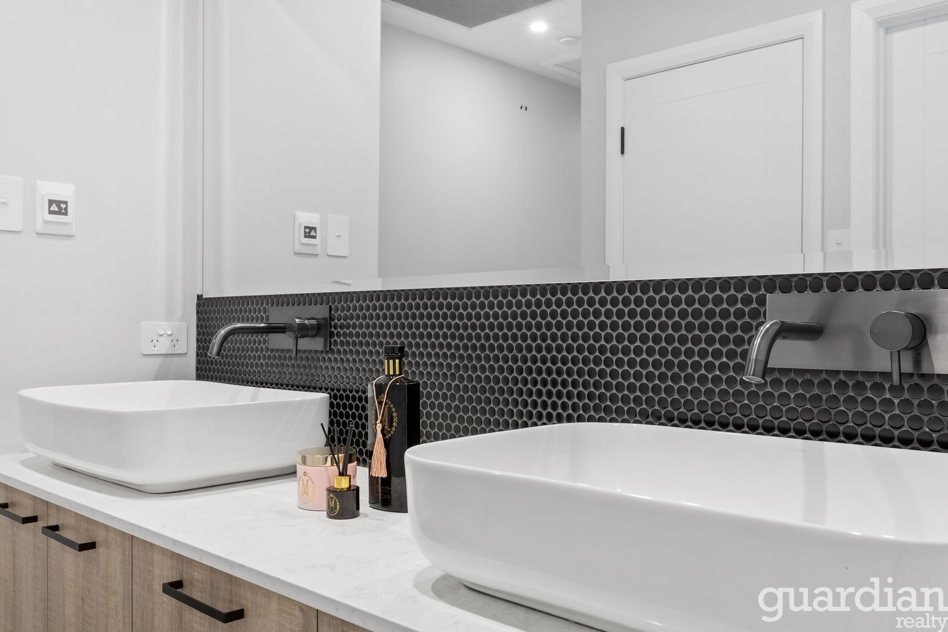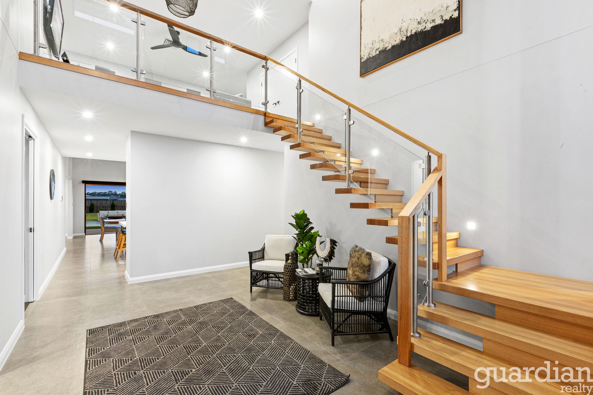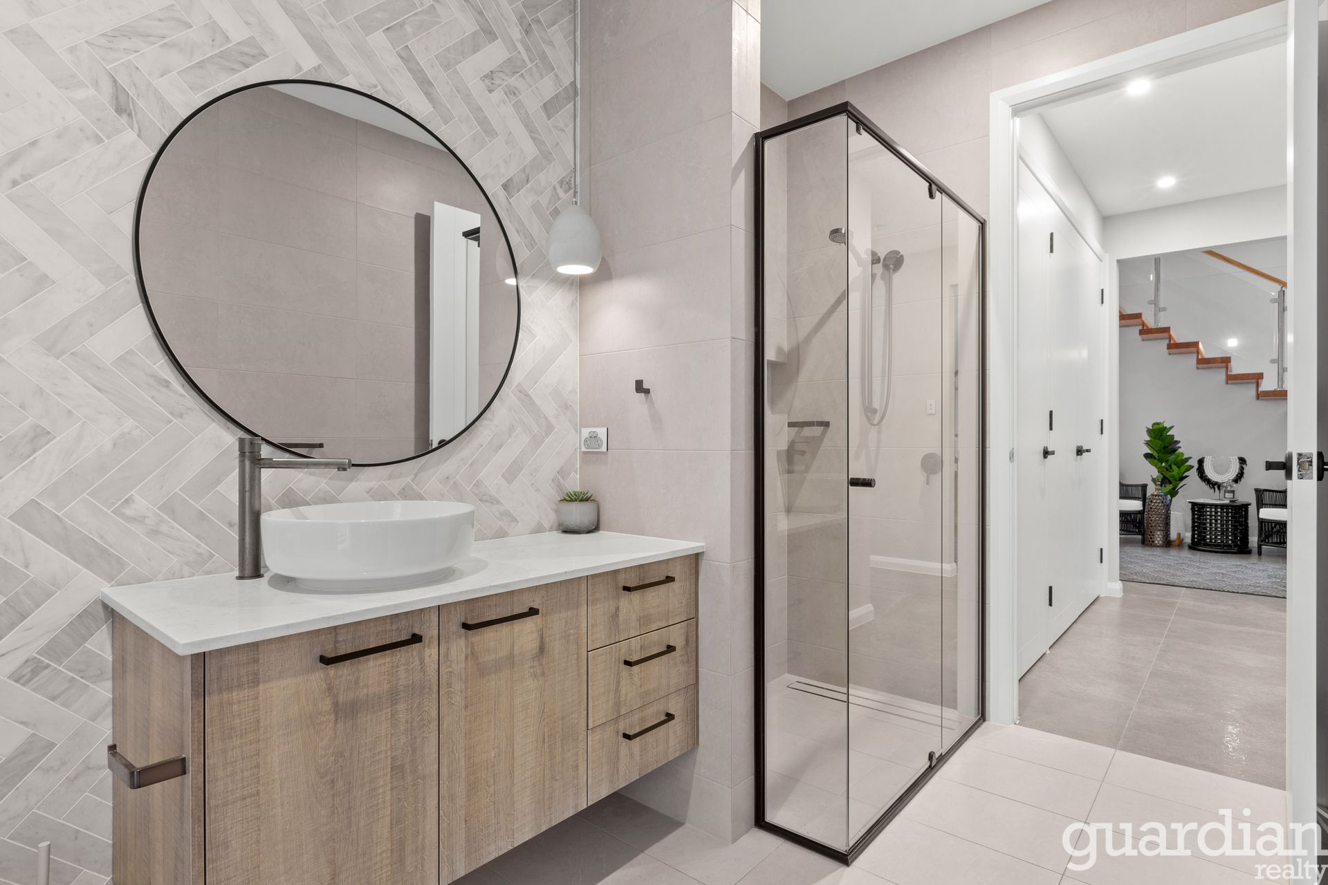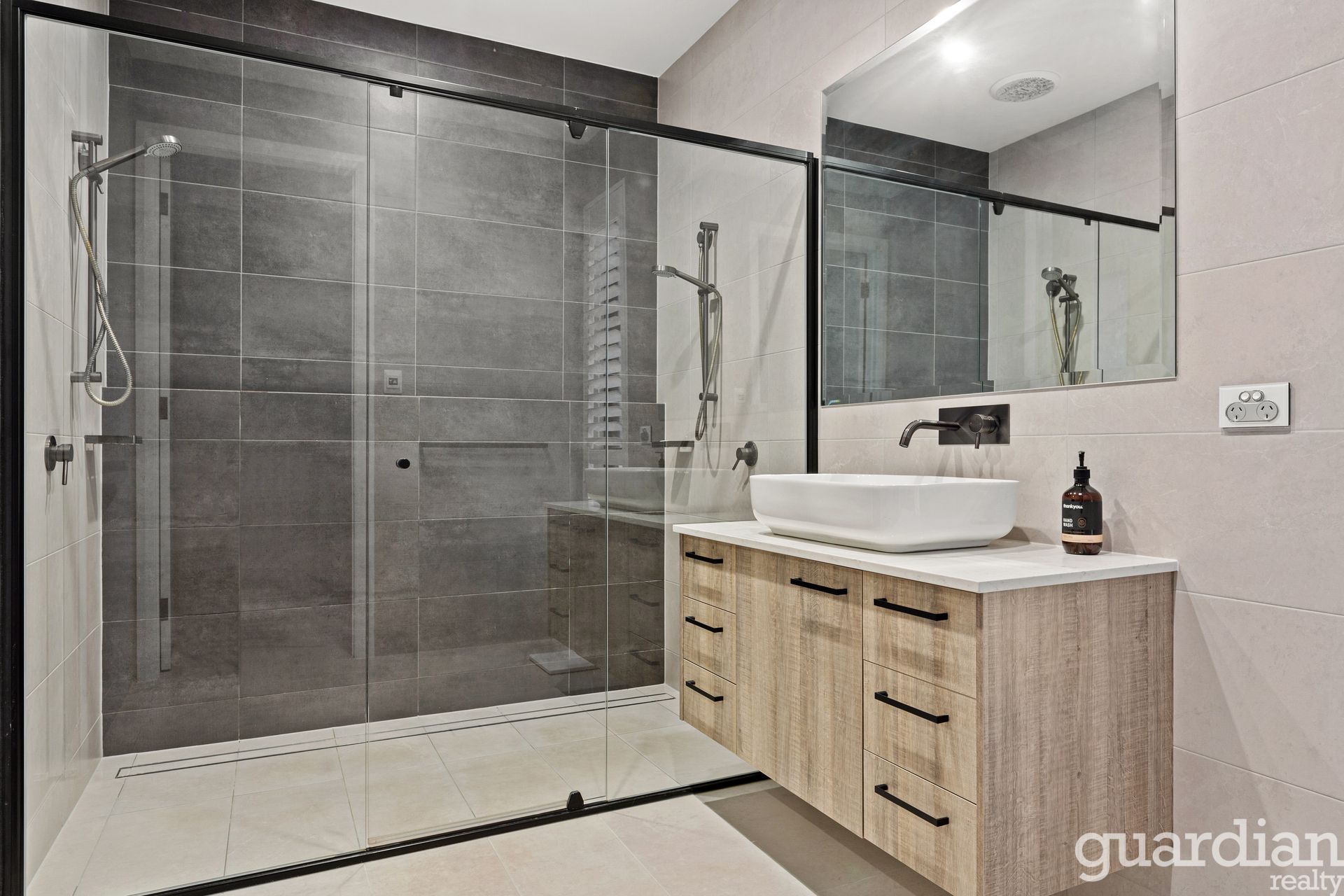 In a striking showcase of custom design and function, this Vermont Estate home redefines modern luxe living. Curated interiors offer an air of ease for entertaining guests or relaxing with family. The high-ceilinged entry is kissed with natural light. A timber and glass staircase leads up to the sleeping quarters where a rumpus centres four double bedrooms and a suave three-way bathroom. Parents have their own sanctuary downstairs where a bedhead wall fronts an ensuite with a double shower, and his-and-hers walk-in wardrobes custom fitted with a make-up vanity.