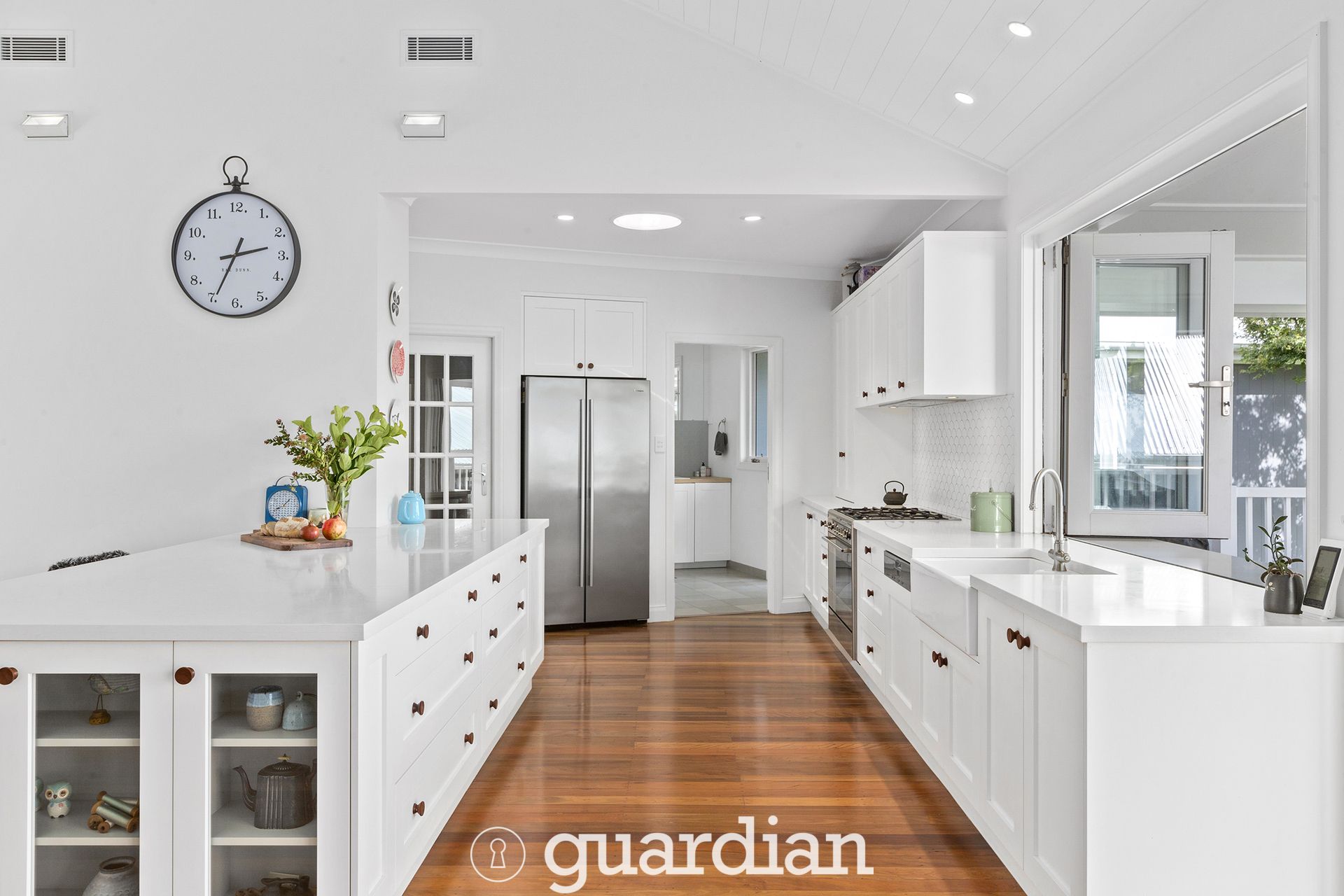 Enjoying position in a highly-sought Arcadia street, this arable one acre block is a rare gem. Set back from the road and impeccably renovated, the home offers charming sun-soaked living zones with a seamless flow to outdoor entertaining. Caesarstone benchtops frame the custom designed kitchen which features a walk-in pantry, modern stainless-steel cooking appliances and a bi-fold servery window through to the alfresco. A large entertainer's deck with vaulted ceilings overlooks the lush acre and renovated saltwater pool.
