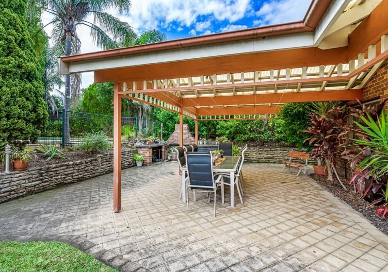 - Expansive outdoor entertaining area overlooking the neatly manicured backyard with pool.