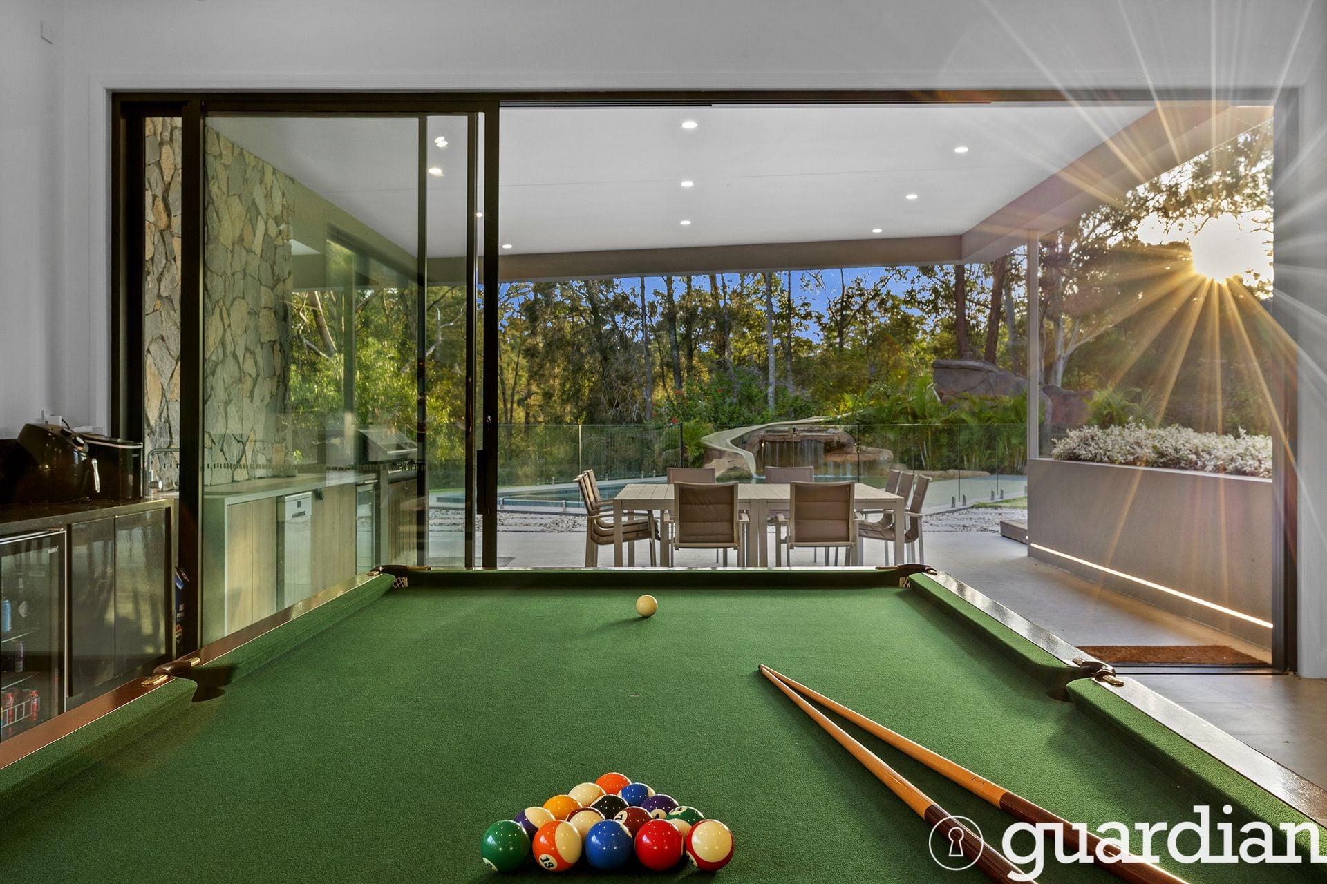 • 30-panel (11.1kW) solar system, ducted air, gas & wood fireplaces