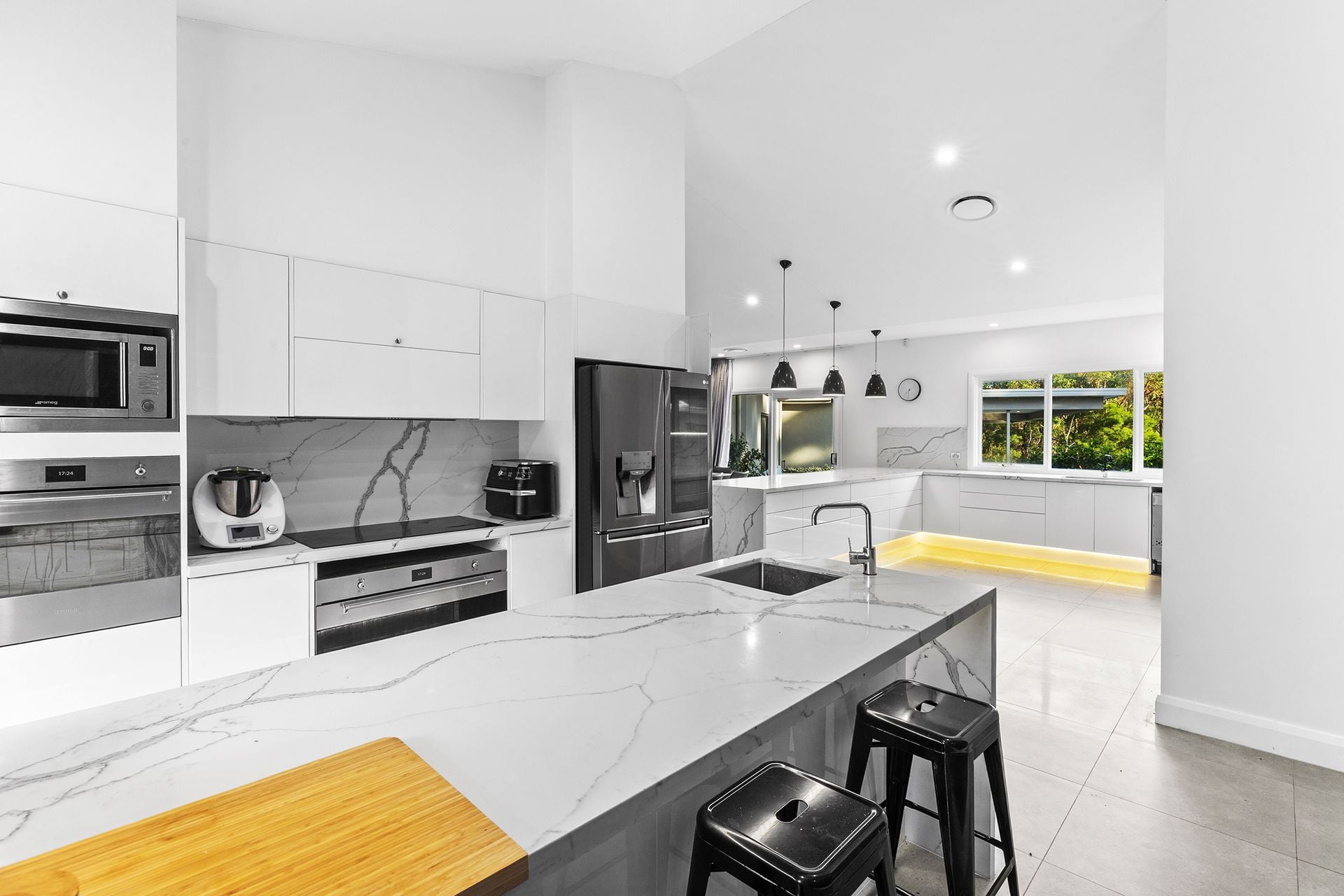 • Two full kitchens with SMEG appliances, stone benchtops & walk-in pantry