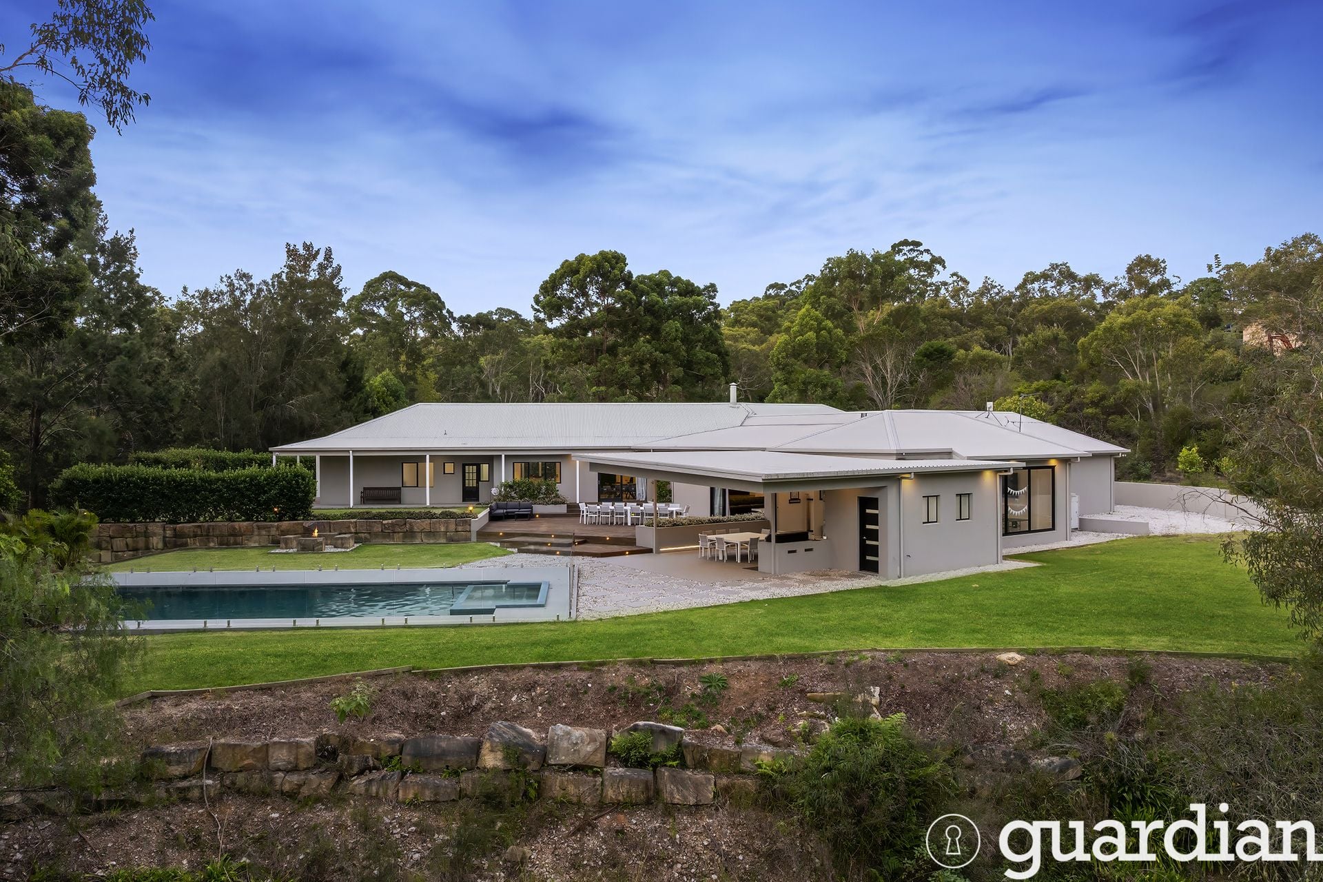Set on over 2.2 hectares of serene Annangrove land, this spacious and versatile home is designed for comfort, flexibility, and effortless entertaining. Boasting five large bedrooms-three with ensuites and walk-in robes-multiple living zones, two fully equipped kitchens, and a home office, it's ideal for extended families or those running a home business. High ceilings, wide verandahs and a blend of modern and character features make every space feel inviting and expansive. Whether you're working from home, hosting guests, or simply enjoying quiet family time, this property adapts to every lifestyle need.