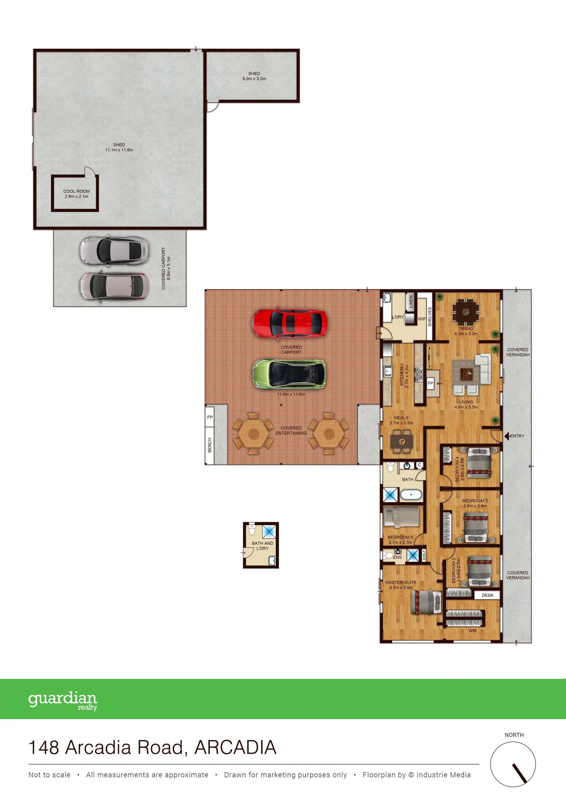 • 11m x 11m (approx.) shed with cool room plus additional smaller shed