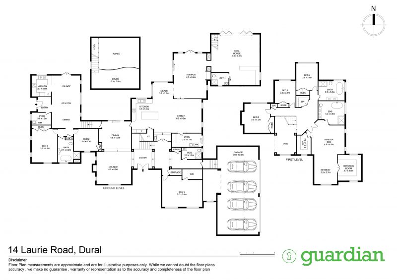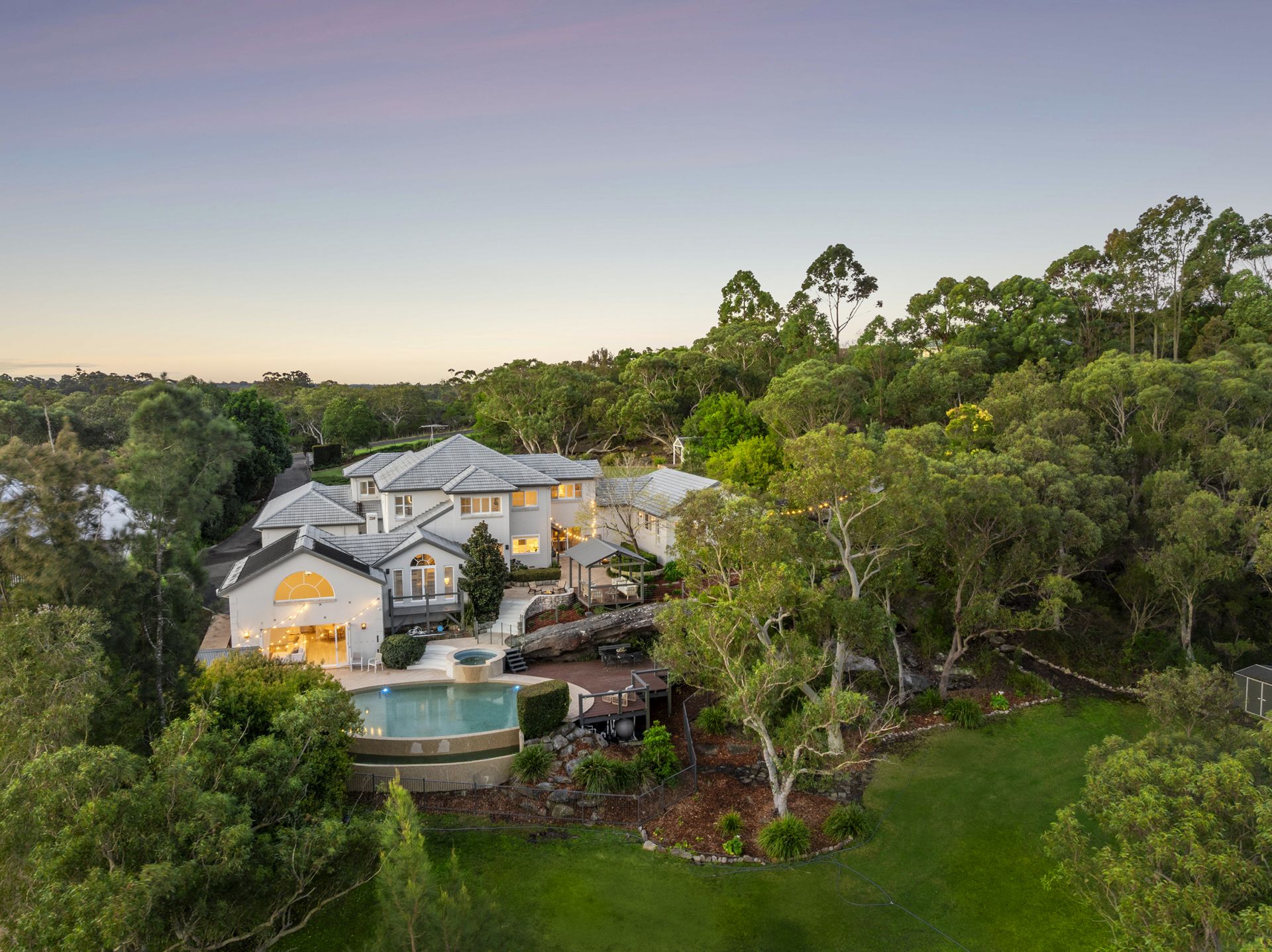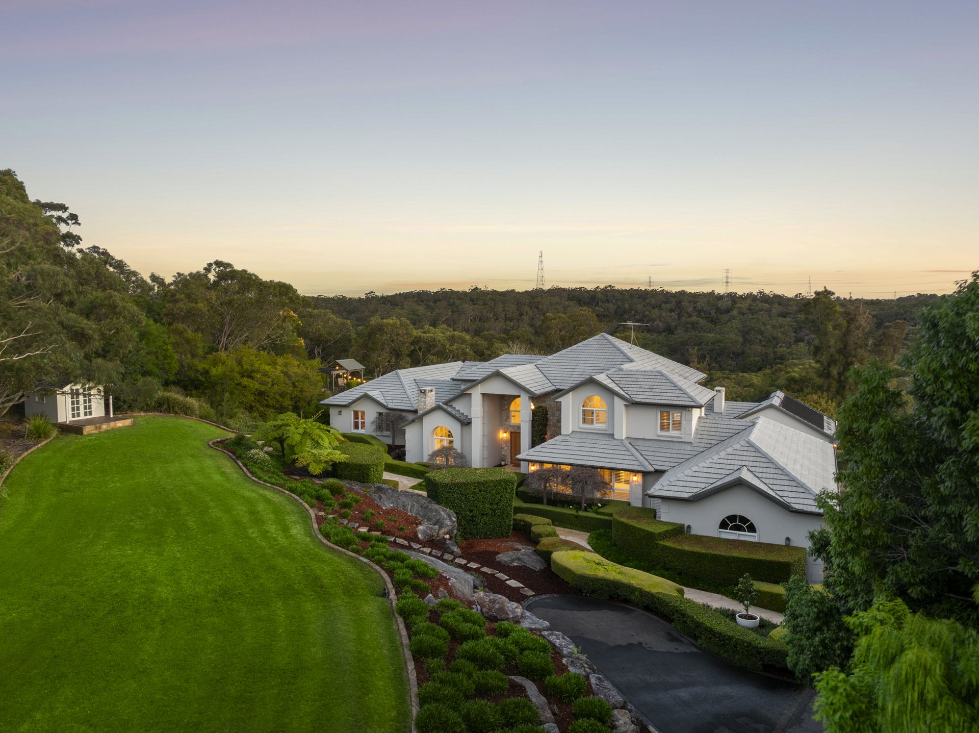 The upper level boasts four large bedrooms with integrated wardrobes, with the master also enjoying a private dressing room, retreat area and luxurious ensuite. Ideal for large families seeking a home suitable for multi-generational family living, there is also a self-contained guest wing with its own entrance featuring a private garden, second kitchen, open lounge and dining zone, two bedrooms and gorgeous bathroom. This haven of tranquillity offers remarkable convenience, just 11 minutes to Round Corner Dural, 17 minutes to Castle Towers and Castle Hill Metro station, and surrounded by a selection of elite schools.