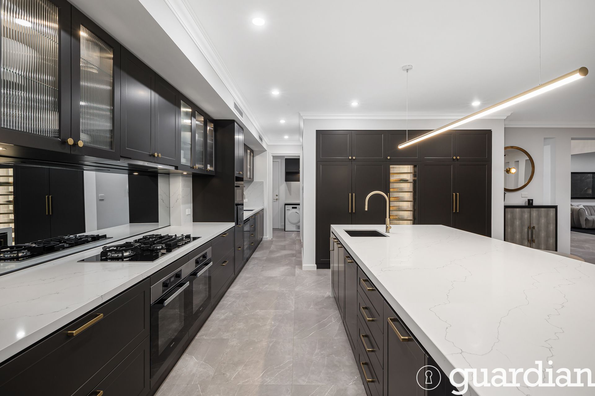An immediately striking entry foyer introduces a stunning, multi-zoned floorplan that flows seamlessly through to expansive outdoor entertaining spaces. Elevating everyday living, the home is equipped with a private lift providing effortless access between levels. The designer kitchen is a true showpiece, complete with a butler's pantry to conceal mess, premium Miele cooking appliances, a statement island bench and bespoke cabinetry. The ground floor offers a first-class master suite with a luxurious ensuite, ideal for guests or in-law accommodation, alongside a study, powder room, mud room and a stylishly appointed laundry.