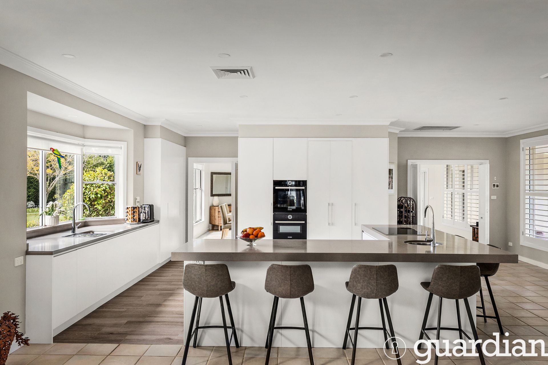 The residence features four spacious bedrooms, including a generous master suite with an ensuite and walk-in robe. The three additional bedrooms are thoughtfully located at the opposite end of the house, with a rumpus room perfect for children's activities. For those working from home, the property includes a dedicated study within the house and an additional office space behind the garage. every cooks dream, the home boasts a beautiful new kitchen with a butler's pantry.
