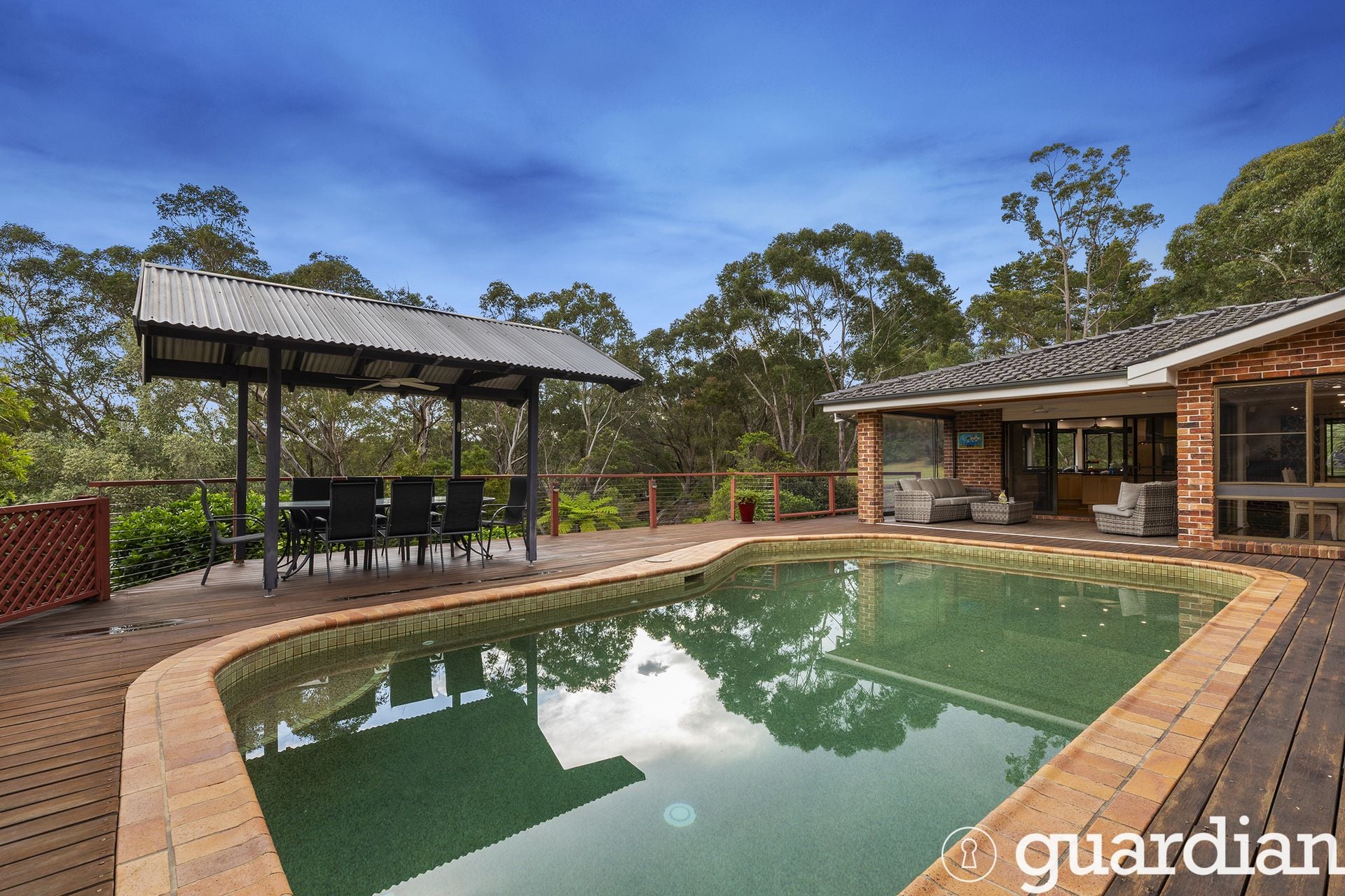 Tucked away amongst established leafy surrounds, this immaculate family home offers a private escape from busy residential living without compromise on convenience. Designed for relaxed family living and effortless entertaining, the single level layout features an oversized living and dining zone complete with the ambience of a fireplace. The generous kitchen enjoys a leafy outlook and boasts an island bench setting, granite benchtops, plenty of storage, multiple pantries, and modern appliances. Glass sliders open to an outdoor entertainers' oasis complete with an elevated covered alfresco, saltwater pool and covered cabana, all of which enjoy the beautiful bush outlook.