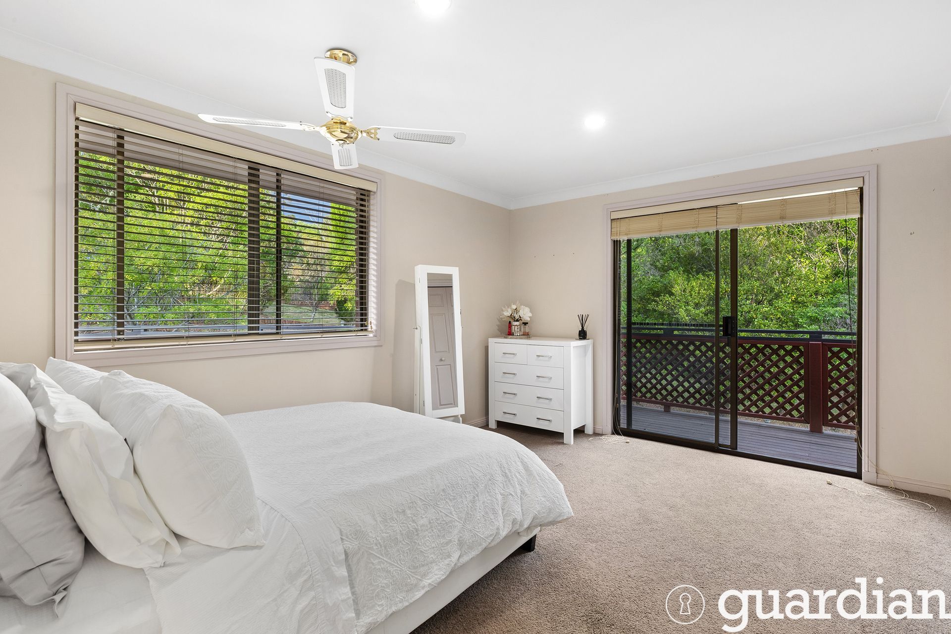 Accommodation comprises five well-sized bedrooms, with the master suite enjoying the luxury of a private ensuite. An impeccably renovated main bathroom with a double vanity, free-standing tub and floor-to-ceiling tiles serves the home, while the second bedroom with direct balcony access offers ideal potential as a teenage retreat. This slice of tranquillity is only 7 minutes to Kenthurst Shopping Centre, 12 minutes to Round Corner Dural, 22 minutes to Castle Towers, and is surrounded by a choice of elite schools.