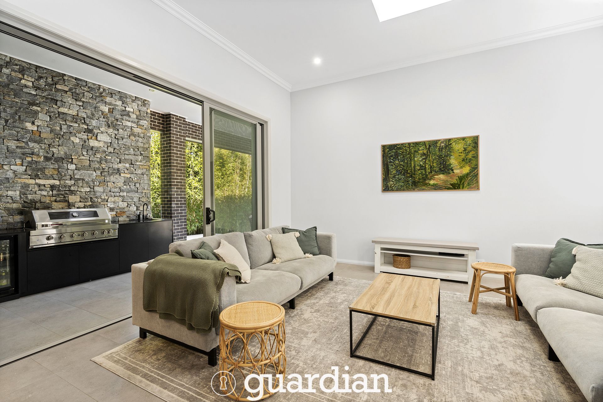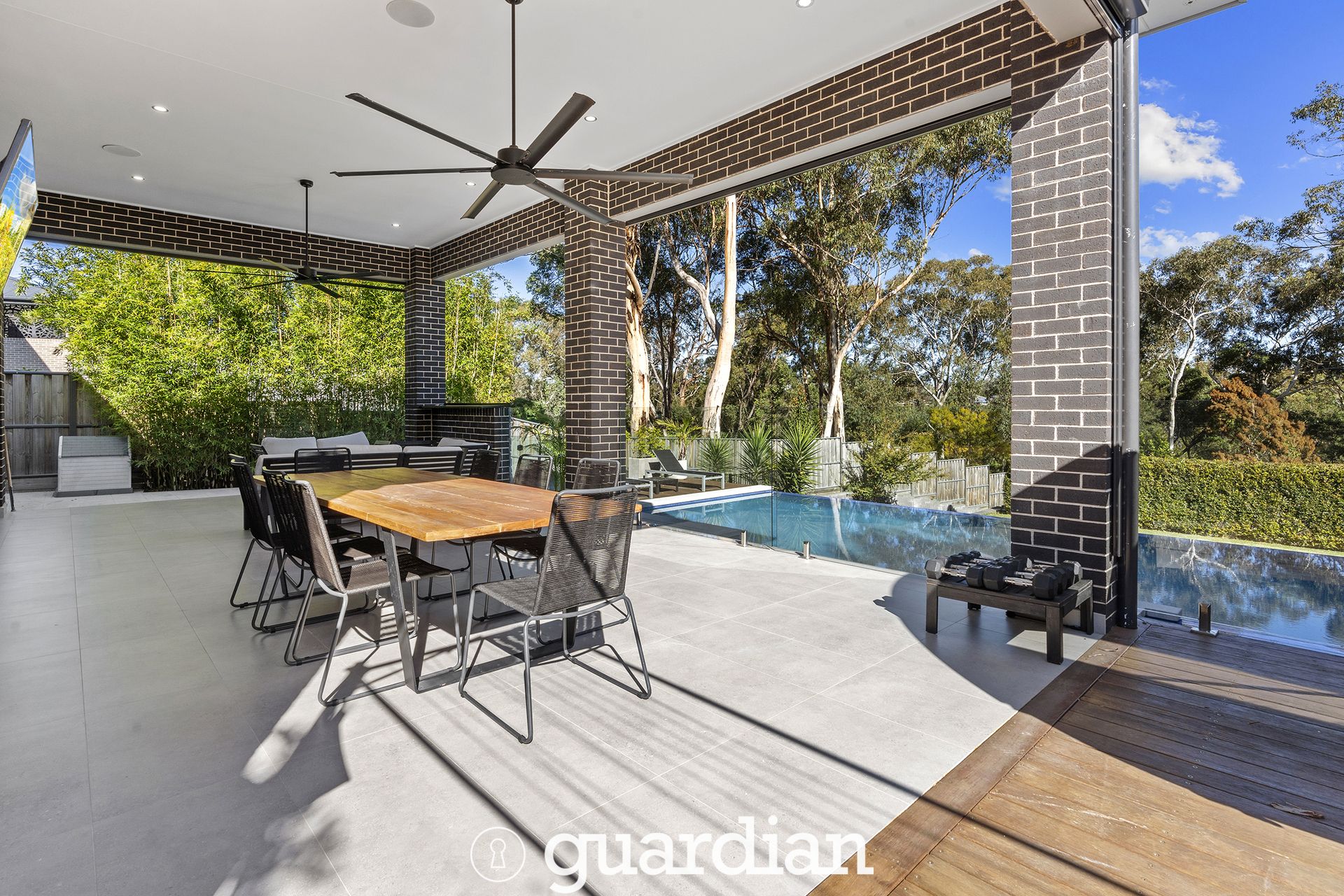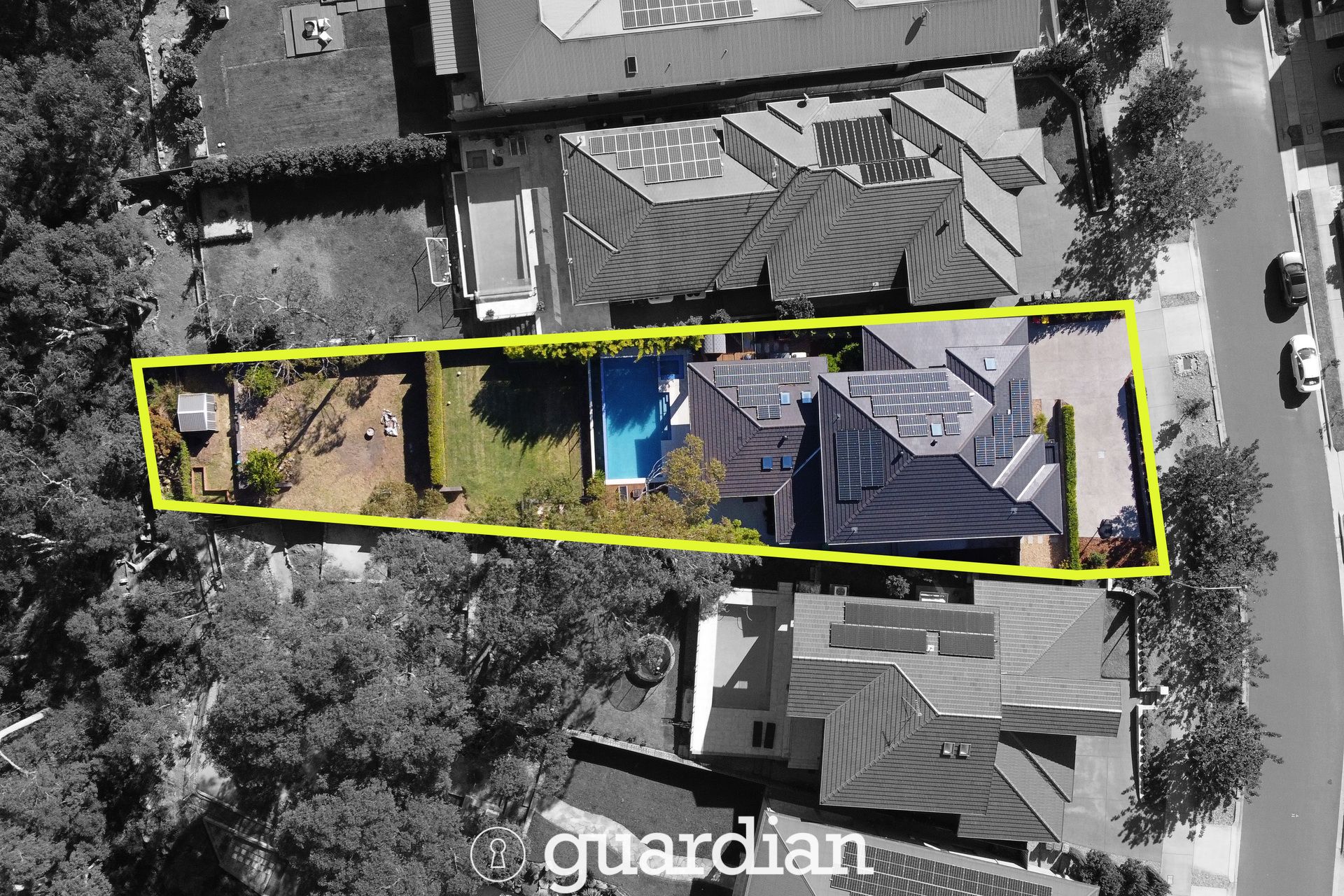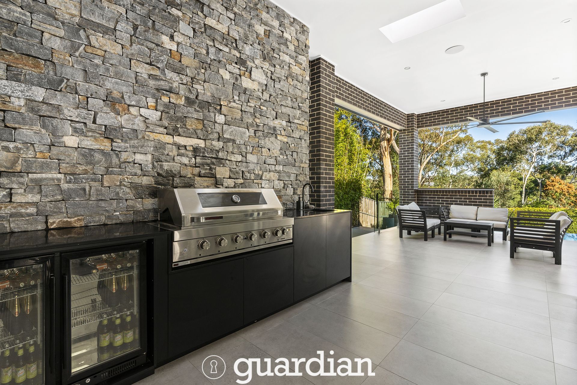 Spectacularly located in one of North Kellyville's top streets with and with a bush backing, this magnificent family retreat exudes unmatched sophistication and style. The multi-zoned floorplan boasts huge open plan living, dedicated study/home office and fully equipped home theatre. Stone benchtops and sleek cabinetry frame the gourmet kitchen which features modern stainless-steel cooking appliances and a generous butler's pantry. Outside is an enviable haven for entertaining family and friends, with a 75sqm covered alfresco complete with a built-in barbecue area positioned overlooking the gorgeous pool and spa.