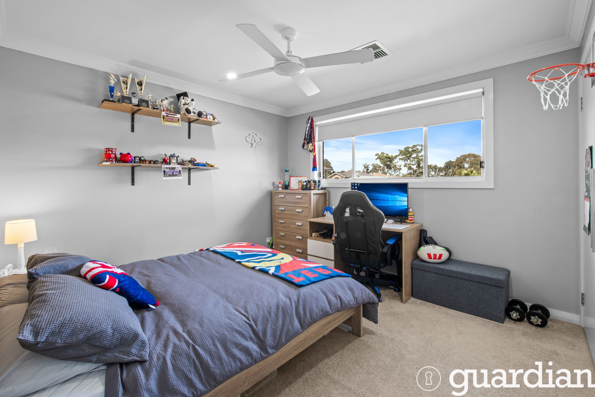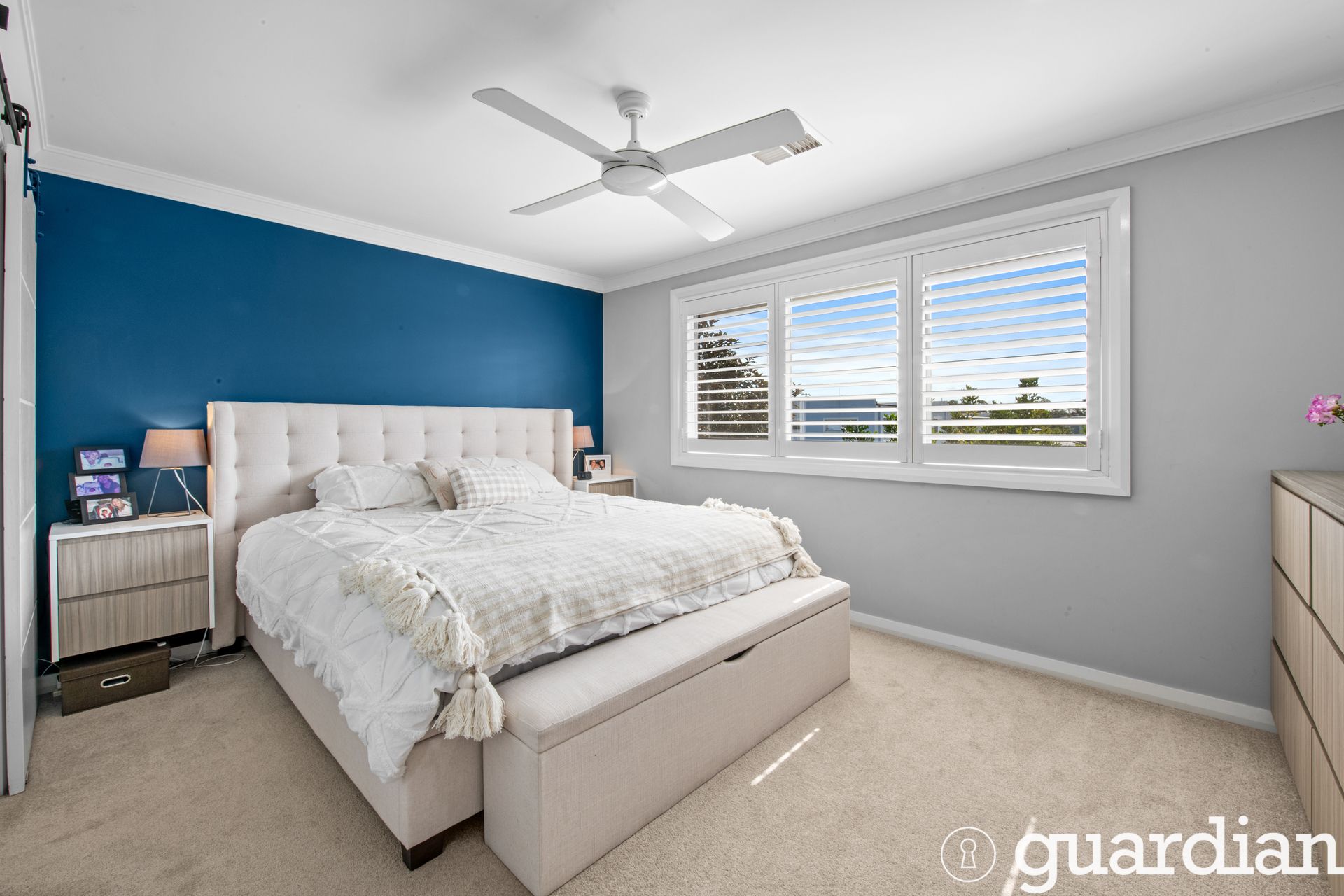 The master suite is a private sanctuary with a walk-in robe and a luxurious ensuite featuring floor-to-ceiling tiles. All additional bedrooms are spacious, fitted with ceiling fans and built-in robes, offering comfort and storage for the whole family.