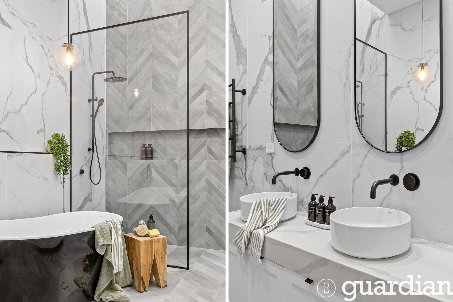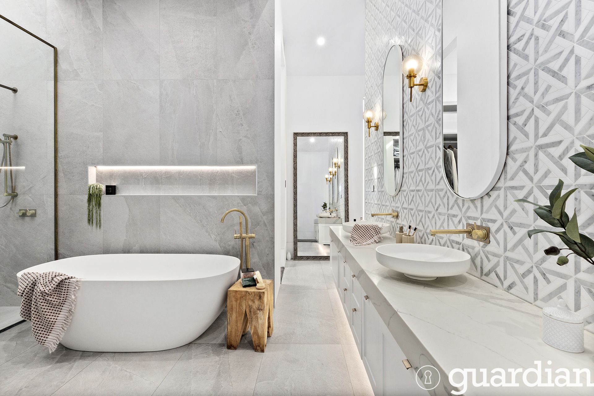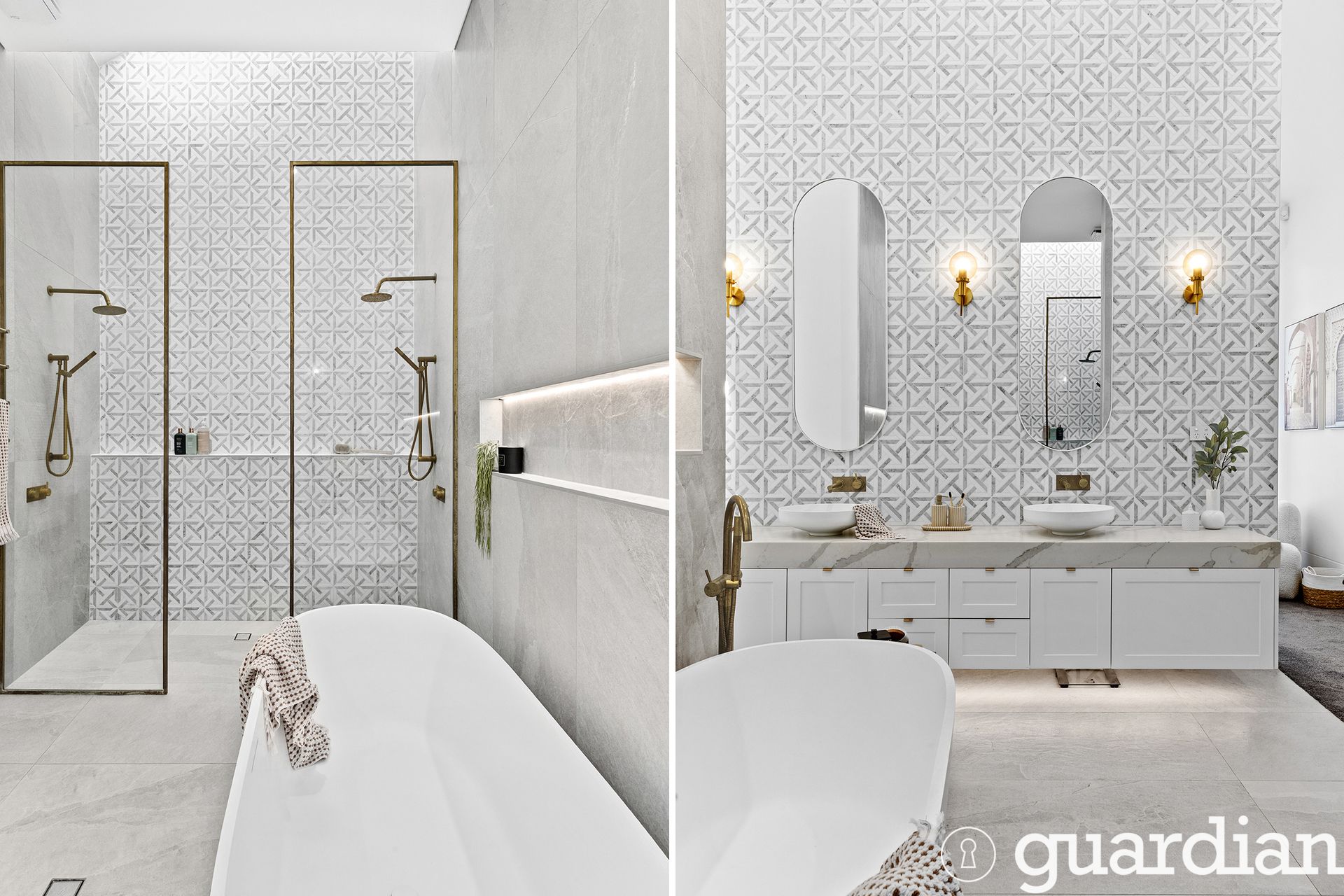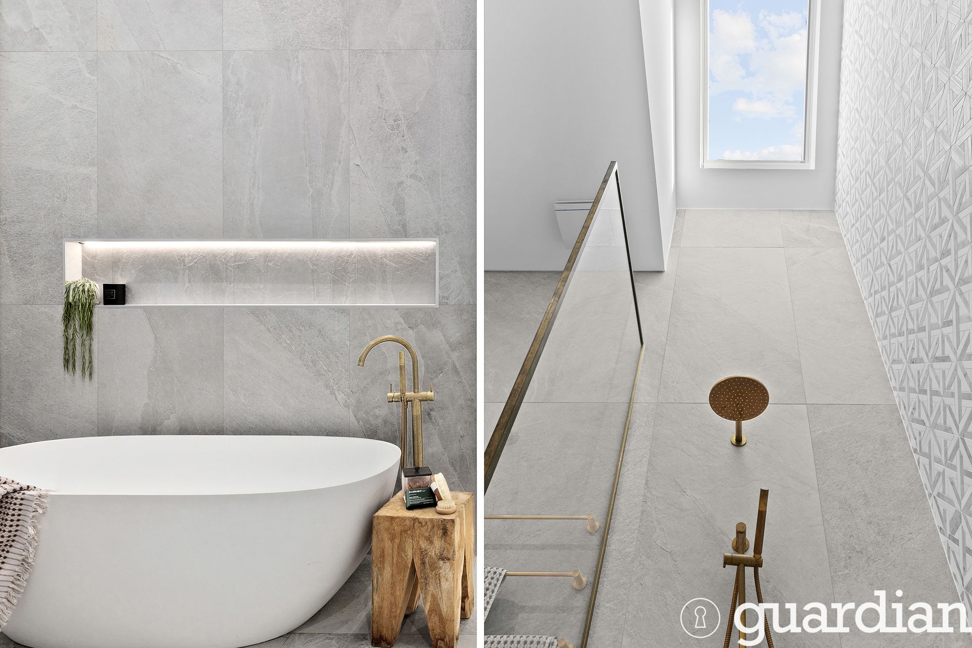 • Floor-to-ceiling tile finish in wet areas